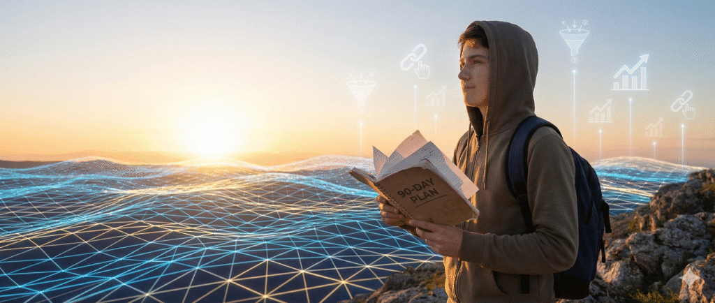 الخريطة ليست نظرية. ليست حكايات محفّزة. إنها نظام عملي مبني على سلوك الباحث، وعلى نوايا الشرائية، وعلى الطريقة التي تفهم بها الخوارزميات ما تكتبه. ومع ذلك، يبقى الهدف الحقيقي إنسانيًا تمامًا: منحك شعور السيطرة، الثقة الأولى، والدفعة التي يحتاجها أي مبتدئ ليضع قدمه على الطريق.